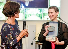 Andrea Kluitmann wurde für die Übersetzung des Preisbuches ausgezeichnet und übernahm stellvertretend die Urkunde sowie die Statuette für Anna Woltz.