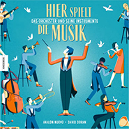 Wie entstanden Orchester? Aus welchen Instrumenten setzen sie sich zusammen? Und wie wissen die Musiker*innen eigentlich, wer wann was spielen muss? In charmantem Ton und ansprechender Aufmachung führen zwei junge Illustrator*innen in einem großformatigen, fast quadratischen Sachbuch in den Mikrokosmos Orchester ein. Dabei blicken sie auch über den Konzertsaal hinaus auf das Genre der Filmmusik und die technische Produktion und Modulation von (Orchester-)Musik. Die auf intensive Farben setzenden, räumlich gekonnt arrangierten Bildkompositionen veranschaulichen nicht nur die wohldosierten Informationen aus dem Text, sondern beinhalten immer wieder auch Elemente des Alltags, symbolhafte Formensprache und unerwartete Komponenten, die dem Buch seine besondere Unbeschwertheit verleihen und dem Sachtext oft mit einem Augenzwinkern begegnen. Bemerkenswert ist nicht zuletzt die Diversität, mit der die Musiker*innen ganz selbstverständlich ins Bild gesetzt werden. Es ist erfrischend, wenn man in einer „Galerie der Berühmtheiten“ nicht den traditionellen männlichen weißen Kanon wiederfindet, sondern Künstler*innen wie die britische Komponistin und Aktivistin Ethen Smyth oder den afro-amerikanischen Dirigenten William Grant Still zwischen bekannten Gesichtern wie Mozart und Michel Legrand entdeckt.