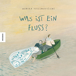 All diese Bedeutungsdimensionen nimmt die litauische Künstlerin Monika Vaicenaviciene in ihrem (Sach-)Bilderbuch auf, steigt jedoch in einem ruhigen, fast ein wenig der Welt entrückten Setting ein: Wir sind am Fluss, Oma und ich. Aus der Frage des erzählenden kindlichen Ichs an die Großmutter, was ein Fluss sei, entspinnen sich auf großformatigen Doppelseiten unterschiedliche Antwortvarianten, Mit [e]in Fluss ist ein Faden, sagt Oma, denn er verbindet Orte, Zeiten und Menschen miteinander, wird ganz allgemein begonnen. Ein Fluss ist aber auch ein Zuhause – durch die Aufzählung konkreter tierischer Flussbewohner*innen wird auf die Ebene der Wissensvermittlung gewechselt. Und mit dem Thema „Ein Fluss ist Lebenskraft“ wird schließlich mit der Taufe am Jordan auch eine ganz konkrete religiöse Handlung an einem Fluss thematisiert.