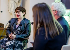 Jurymitglied Anna Winkler-Benders, Reinhard Ehgartner und Brigitte Schwens-Harrant, Feuilletonchefin der Wochenzeitung "Die Furche" reflektierten miteinander, was dieses Buch auszeichnet und was sie selbst während der Lektüre faszinierte: Sprache, Witz, eine charismatische Hauptfigur oder die intelligente Form der Motivgestaltung sind nur einige Aspekte, die von den Literaturexpert_innen genannt wurden und in deren Begeisterung zu spüren war, dass dieses Buch zurecht den Katholischen Kinder- und Jugendbuchpreis in diesem Jahr erhalten sollte.