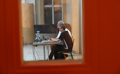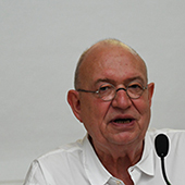 Im Werkstattgespräch ging es dann zunächst um seine Arbeit an Coverillustrationen von so namhaften Politmagazinen wie „Stern“ und „Spiegel“. In Erinnerung geblieben sind vor allem die Covers zu den gefälschten Hitler-Tagebüchern, zum Klimagipfel oder der gerupfte deutsche Bundesadler. Dabei war der Zeitdruck in diesem Metier enorm: Die Entscheidung für einen Titel fiel am Dienstag und bis Freitag musste das Cover fertig sein. Enorm stressig, dafür gut bezahlt.