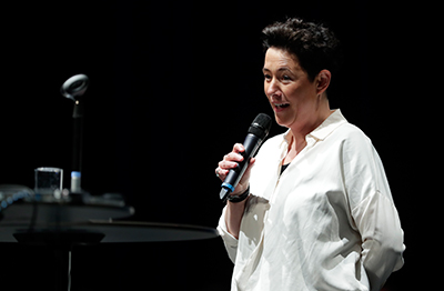 Irmgard Krammer sprach stellvertretend für alle Preisträger*innen Dankesworte, und gab ihrer großen Freude Ausdruck, überhaupt etwas zu gewinnen, weil alleine das mit so viel Glück und auch Zufällen zutun hat, dass man es gar nicht planen kann. Als universelle Gemeinsamkeit machte sie die Freude am Erfinden und Lesen von Geschichten aus.