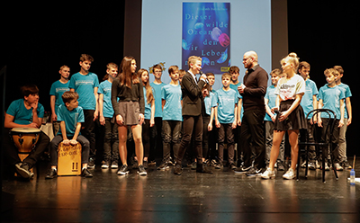 Bestätigt wurde dies von der heurigen Jugendjury bestehend aus Schüler*innen des BG/BRG Biondekgasse in Baden. Sie wählten aus den Preisbüchern und der Kollektion ihren Siegertitel, den sie in einer bunten Performance präsentierten: Dieser wilde Ozean, den wir Leben nennen von Elisabeth Steinkellner. (Beltz & Gelberg)