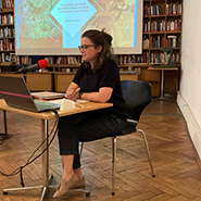 Topografie und Intermedialität war das abschließende Thema des Symposions. Verena Stauffer las ihre Fortsetzung des „Plusterich" vor. Marlene Zöhrer referierte zur Bilderbuchkunst im Werk von Barbara Frischmuth und sprach dabei ein Thema an, das im Lauf des Symposions auch deutlich wurde: Die Scheu der Germanist*innen vor der Bildhaftigkeit der Kinder- und Jugendliteratur. Dabei wurde deutlich, dass die interdisziplinären Brücken der KJL zur Kunstgeschichte und zu den Medien einer eigenen Expertise bedürfen, wie sie glücklicherweise in der STUBE gepflegt wird. Zum fabelhaften Abschluss der Tagung gab es eine Performance von Verena Hochleitner zum „Pluderich".