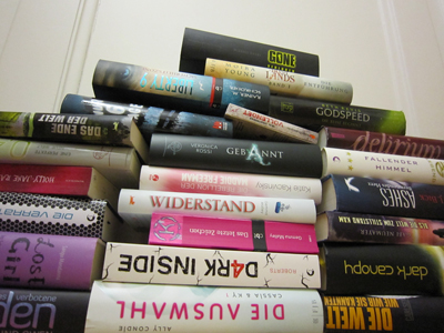 Suzanne Collins: Die Tribute von Panem: Tödliche Spiele / Gefährliche Liebe / Flammender Zorn. Aus d. Engl. übers. v. Sylke Hachmeister u. Peter Klöss. Oetinger 2009 / 2010 / 2010.