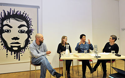 Sie entführte in die Welt der gesprayten Kunst, in die Subkultur des Graffiti und geleitete Gäste und Publikum auf einen erlebnisreichen Streifzug durch ein spannendes Buch und durch Wien, wo „17 Erkenntnisse über Leander Blum“ angesiedelt ist.