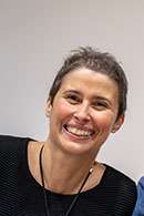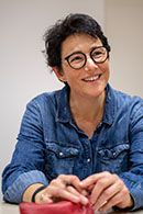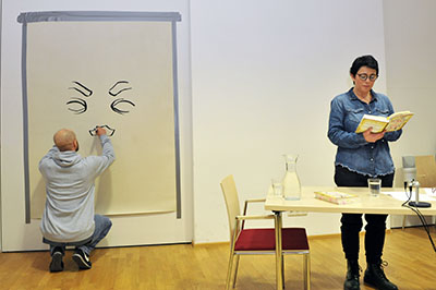 Nach der Pause las Irmgard Kramer zwei Passagen aus „17 Erkenntnisse über Leander Blum“ aus den beiden im Buch sich abwechselnden Perspektiven der Hauptfiguren Leander und Lila, die auch zwei Tonalitäten im Erzählen ergeben. Den einzelnen Kapiteln sind Gemälde vorangestellt, die sich am Ende mosaikartig zu einem Ganzen fügen.