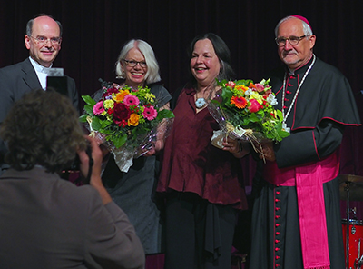 Das begehrte Foto mit Weihbischof Robert Brahm, Birgitt Kollmann, Lauren Wolk, und Bischof Dr. Gebhard Fürst (v.l.n.r.).