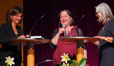 Karin Rademacher (Dolmetscherin), Lauren Wolk und Ute Wegmann (v.l.n.r)